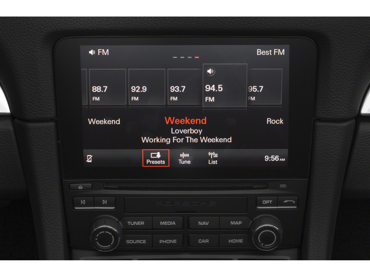 - Radio: Porsche Communication Management (PCM) -inc: mobile phone preparation and audio interfaces, sound package plus, 6 loudspeakers, 110-watt total output w/integrated amplifier and digital signal processing