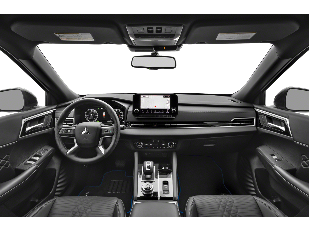 2.4L 4-Cylinder DI DOHC, 3rd row seats: split-bench, 4-Wheel Disc Brakes, ABS brakes, Air Conditioning, Alloy wheels, AM/FM radio: SiriusXM, Android Auto & Apple CarPlay, Auto High-beam Headlights, Auto-dimming Rear-View mirror, Automatic temperature control, Brake assist, Bumpers: body-color, Driver door bin, Driver vanity mirror, Dual front impact airbags, Dual front side impact airbags, Electronic Stability Control, Emergency communication system: Mitsubishi Connect w/ 24-month trial, Four wheel independent suspension, Front anti-roll bar, Front Bucket Seats, Front Center Armrest w/Storage, Front dual zone A/C, Front fog lights, Front reading lights, Fully automatic headlights, Headlight cleaning, Heated door mirrors, Heated Front Bucket Seats, Heated front seats, Heated rear seats, Heated steering wheel, Illuminated entry, Knee airbag, Leather Shift Knob, Leather steering wheel, Low tire pressure warning, Memory seat, Navigation System, Occupant sensing airbag, Outside temperature display, Overhead airbag, Overhead console, Panic alarm, Passenger door bin, Passenger vanity mirror, Power door mirrors, Power driver seat, Power Liftgate, Power moonroof, Power passenger seat, Power steering, Power windows, Radio data system, Radio: AM/FM 9 Smartphone Link Display Audio, Rain sensing wipers, Rear air conditioning, Rear anti-roll bar, Rear seat center armrest, Rear side impact airbag, Rear window defroster, Rear window wiper, Reclining 3rd row seat, Remote keyless entry, Security system, Speed control, Speed-Sensitive Wipers, Split folding rear seat, Spoiler, Steering wheel mounted audio controls, Tachometer, Telescoping steering wheel, Tilt steering wheel, Traction control, Trip computer, Turn signal indicator mirrors, Variably intermittent wipers, 2.4L 4-Cylinder DI DOHC.